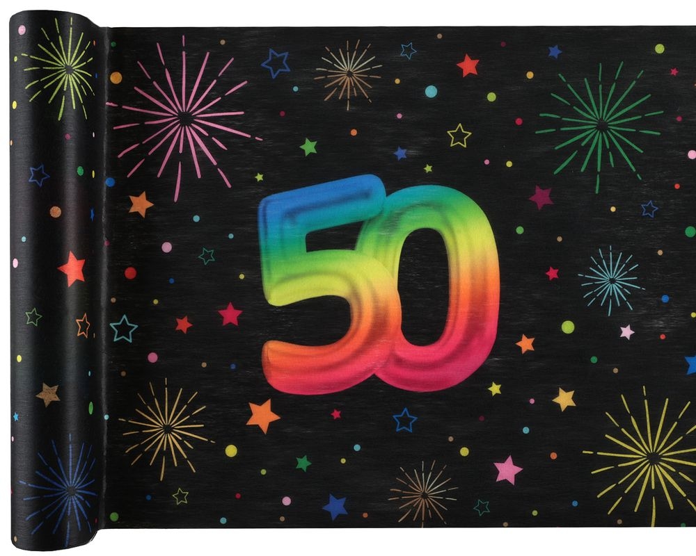 Tischläufer 50. Geburtstag bunt 3 m x 30 cm