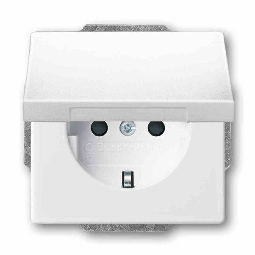 Busch-Jaeger Duro 2000 SI Steckdose, 1f, weiß, glänzend, Unterputz, horizontal/vertikal, mit Klappdeckel, IP20, Zentralplatte