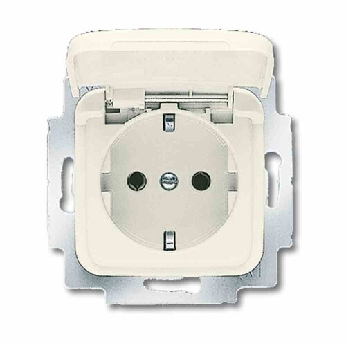 Busch-Jaeger Allwetter 44 Steckdose, 1f, weiß, glänzend, Unterputz, mit erhöhtem Berührungsschutz, horizontal/vertikal, mit Klappdeckel, IP44