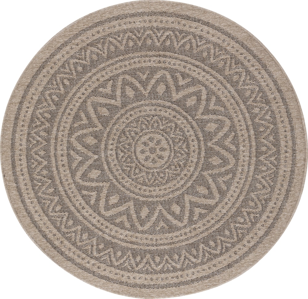 Tappeto Rotondo Esterno/Interno Aspetto di Juta Beige/Nero Ø 160