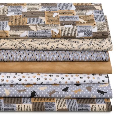 Patchwork- und Quiltpaket Zeitung & Katzen, braun-color