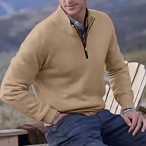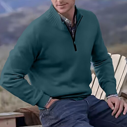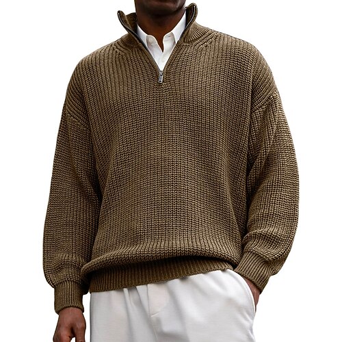 Per uomo Felpa Maglione Maglione con zip a un quarto A Coste Maglia Top Regolari Lavorato a maglia Slim Fit Semplice Colletto Mao Maglieria Contemporaneo Casuale Abbigliamento quotidiano Abbigliamento
