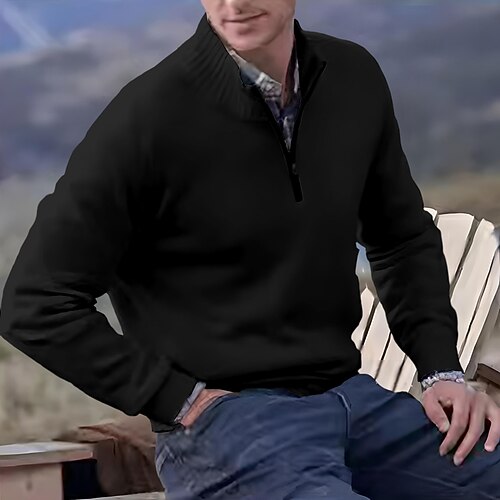 Per uomo Felpa Maglione Maglione con zip a un quarto A Coste Maglia Top Regolari Lavorato a maglia Slim Fit Semplice Colletto Mao Maglieria Contemporaneo Affari Casuale Abbigliamento Autunno Nero