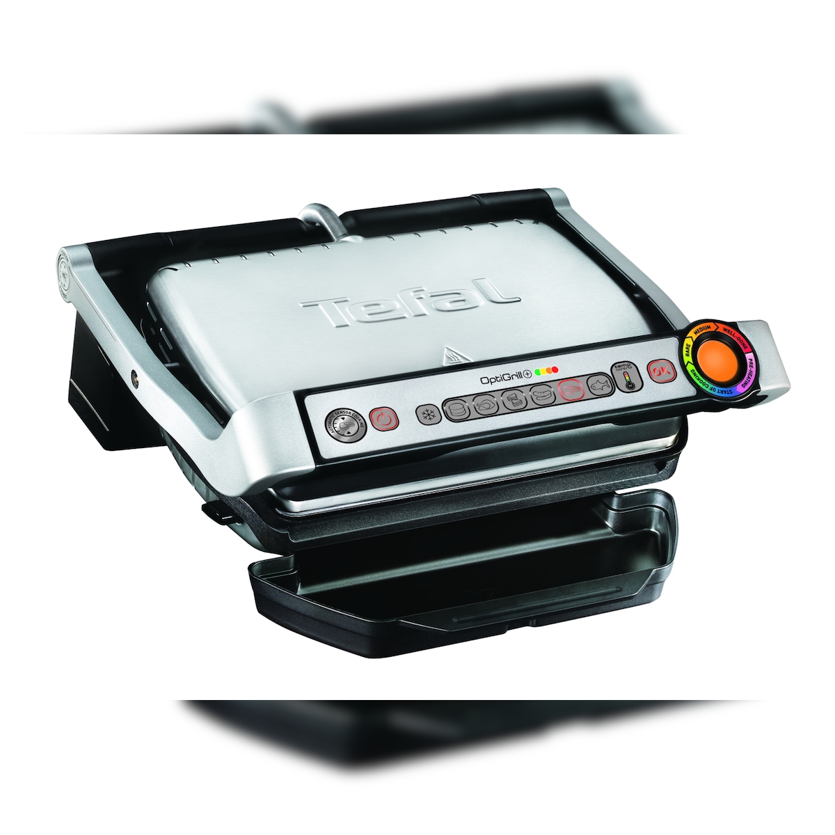 Kontaktgrill TEFAL "GC714D OptiGrill", grau (schwarz, edelstahlfarben), B:44,5cm H:22,9cm T:51,2cm, Kontaktgrill_Standgrill_Tischgrill_Teppanyakigrill, Kontaktgrill, + inkl. Snacking & Baking Zubehör