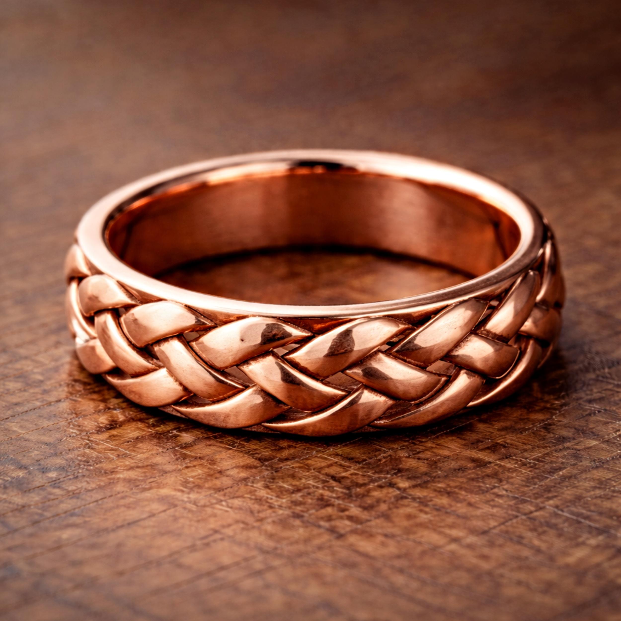 Reiner Kupfergeflecht-Bandring – Breiter gewebter Stil, Handgemachter Kupferschmuck, Versprechensring Kupfer