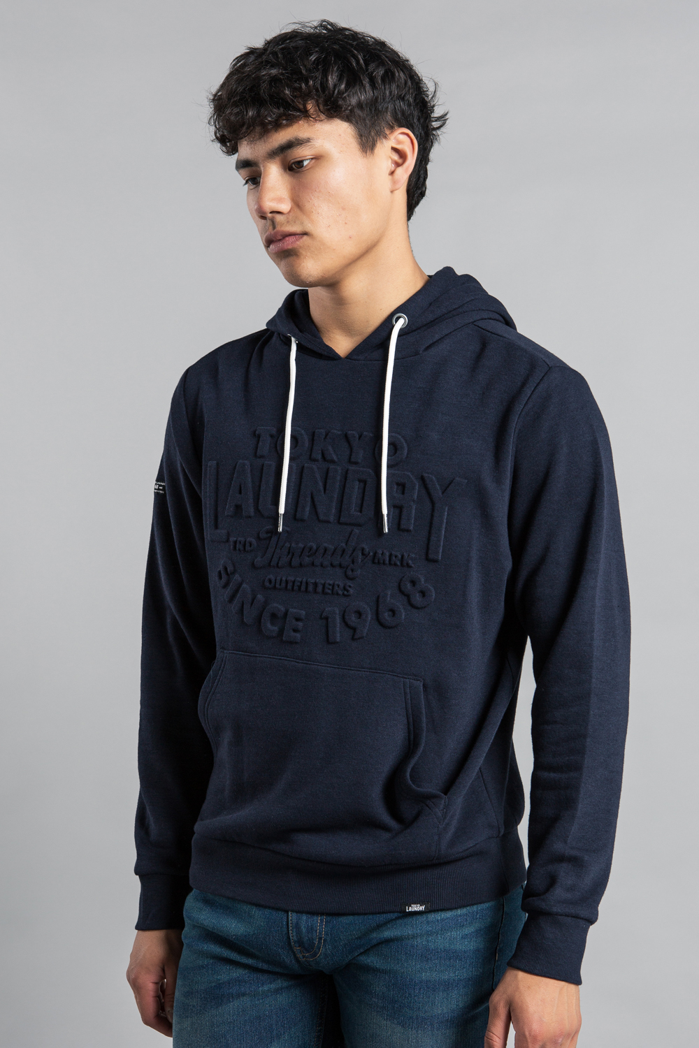 Tokyo Laundry Mens Navy Cotton Blend Embossed Drawstring Hoody - Grey - Size Small | Tokyo Laundry Sale | Discount Designer Brands