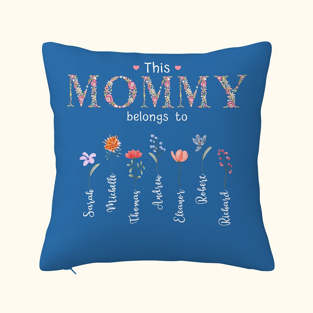 Taie d'Oreiller Personnalisée avec 1-16 Noms et Fleurs de Naissance Thème This Belongs To Cadeau Emménagement Fête des Mères pour Maman Grand-Mère