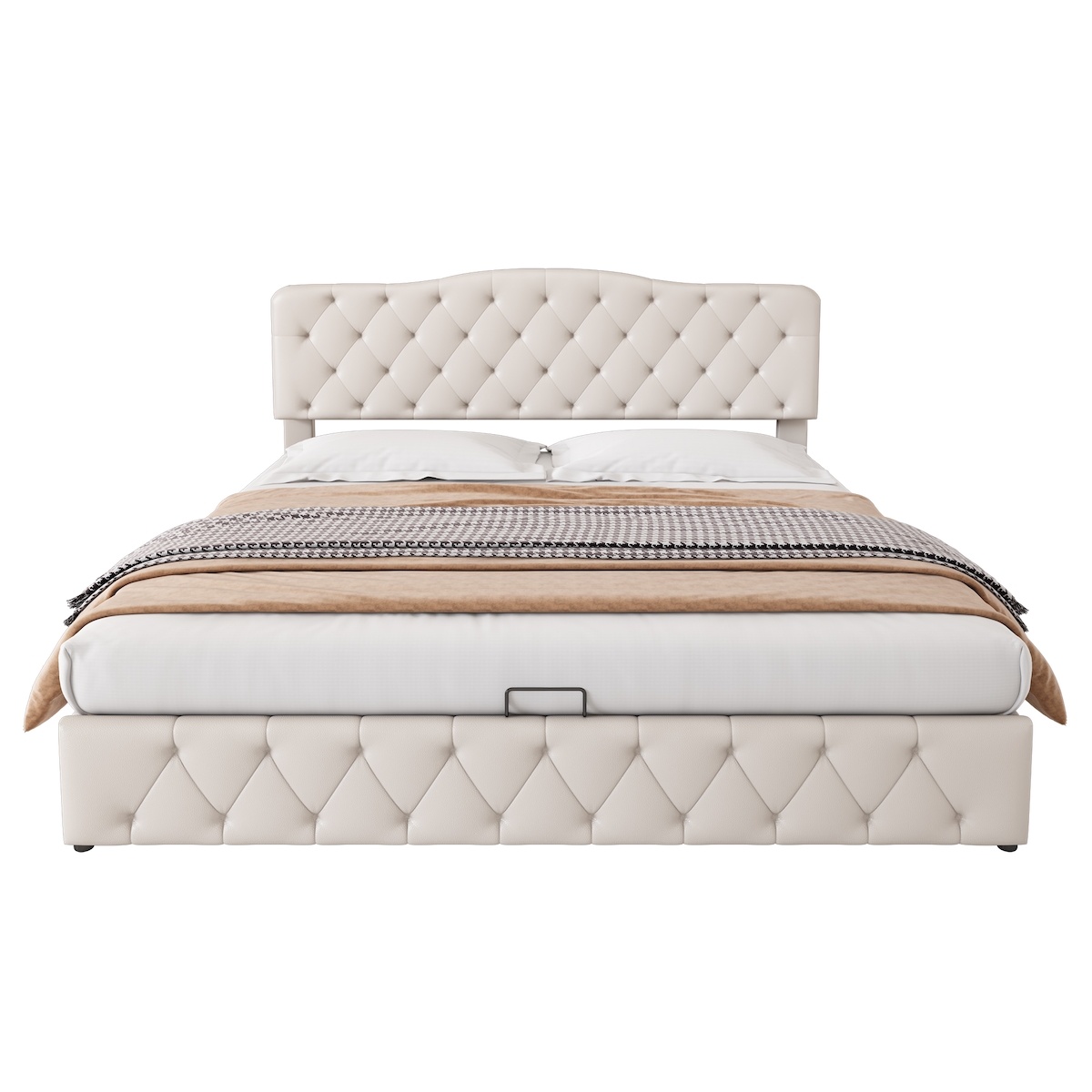 OKWISH Polsterbett mit höhenverstellbarem Kopfteil und Hydraulik-Stauraum 180x200 Europäisches Design Bett mit PU-Bezug, Luftfedern Doppelbett Weiß