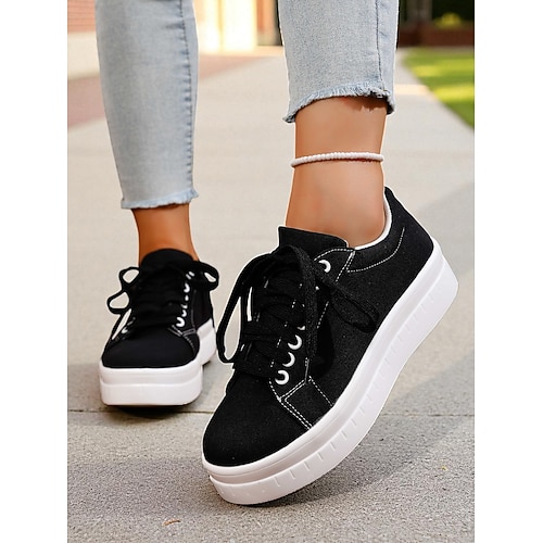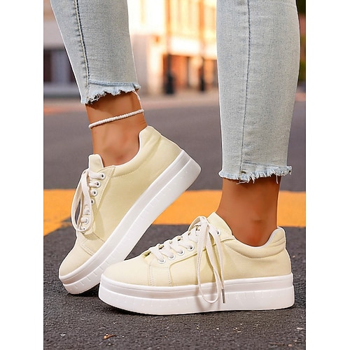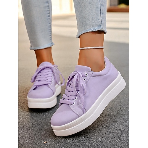 scarpe da ginnastica da donna in tela viola lavanda con plateau – scarpe da skater basse con lacci e suola spessa per la scuola, abbigliamento casual da strada e passeggiate