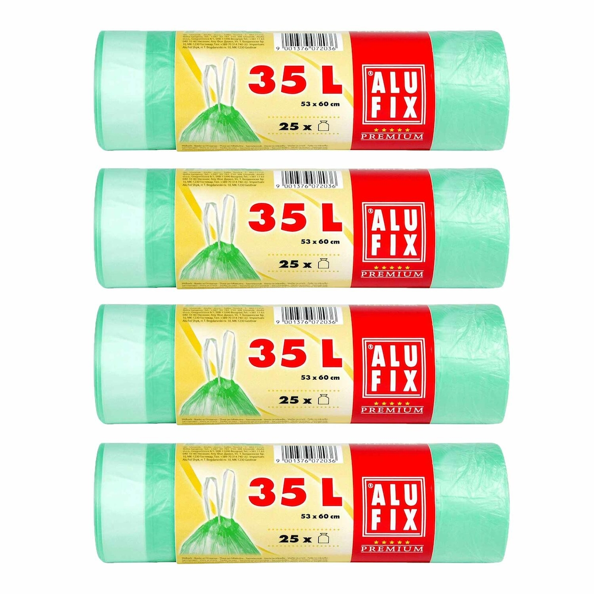 100x ALUFIX Müllsäcke Müllbeutel mit Zugband 35L HDPE grün 53 x 60 cm