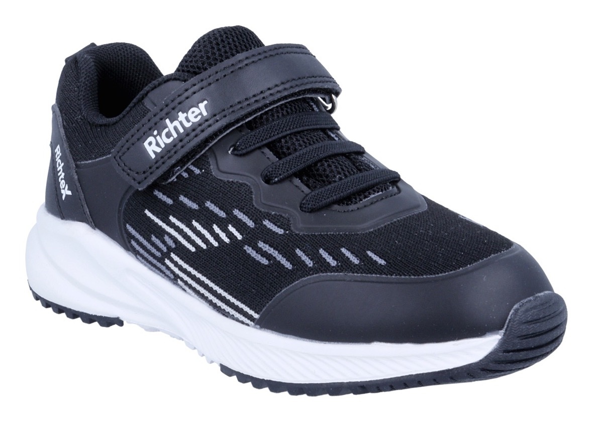 Sneaker RICHTER "Buddy WMS: Weit", Kinder, Gr. 32, schwarz, Textil, Lederimitat, kontrastfarbene Details, sportlich, Schuhe, Sportschuh, Trainingsschuh, Klettschuh mit Richtex-Membrane