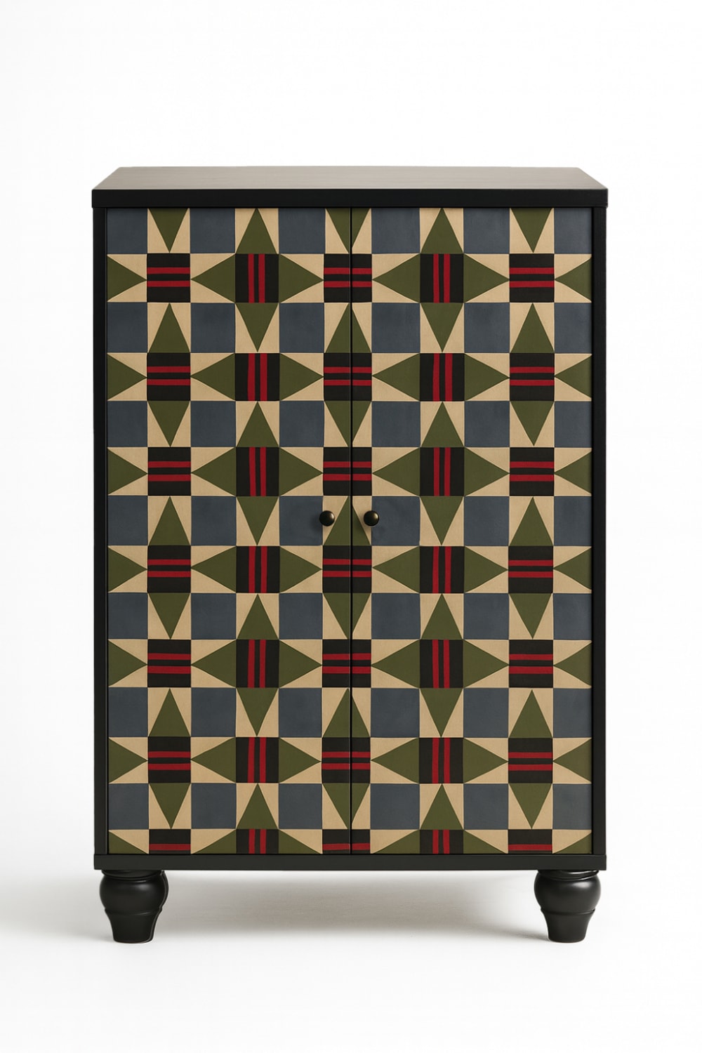 AQA DESIGN Buffet haut en mélamine et MDF noir/vert sauge