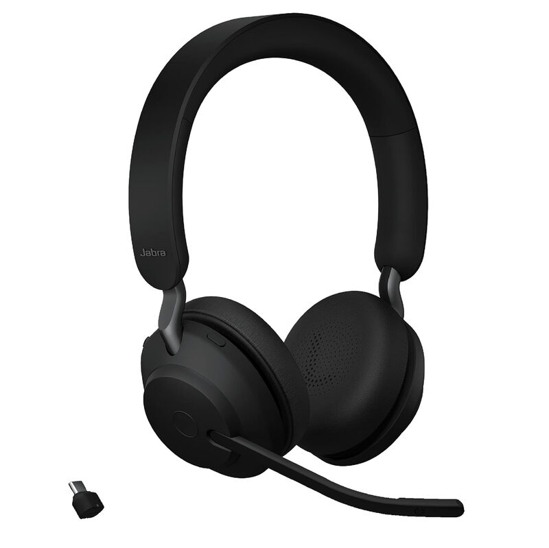 Jabra Evolve2 65 kabelloses pc-headset mit geräuschunterdrückung, Microsoft Teams-zertifizierte stereo-kopfhörer, lange akkulaufzeit, usb-c-bluetooth-adapter, schwarz