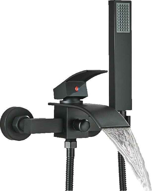KLARWERK "ROSA" | Wasserfall Badewannenarmatur Schwarz Dusche |Edelstahl, Inklusive Handdusche und Halterung | Mischbatterie Badewanne Thermostat Komplett-Set