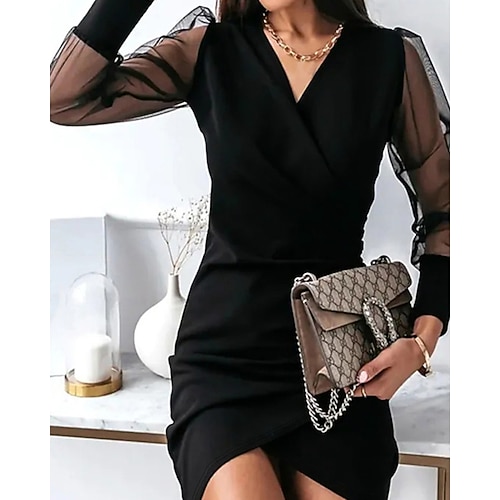 Per donna Mini Abito Abito nero Tubino Moda Moderno Ferie Data Uscire Vestibilità regolare Semplice Manica Lunga Scollo a V Nero Primavera Autunno