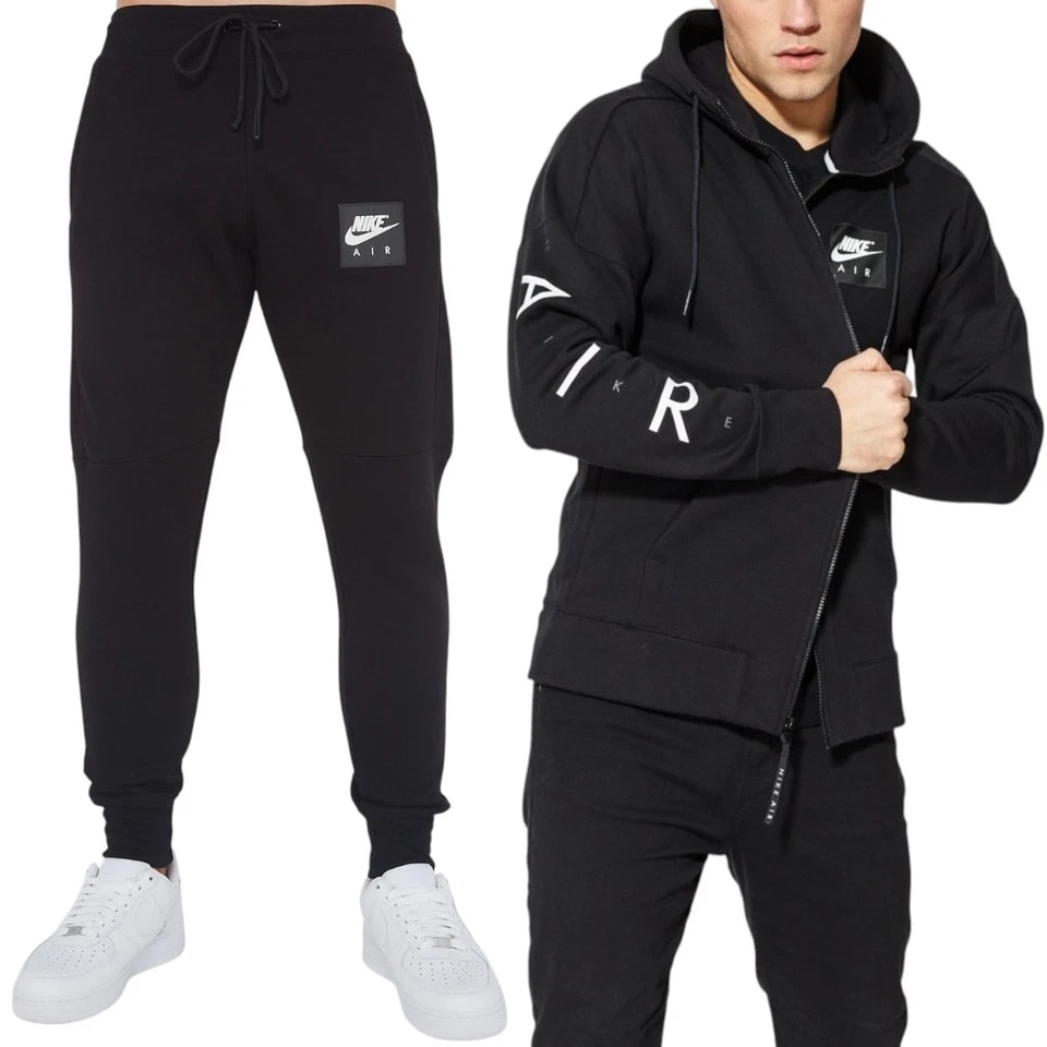 Nike Air Mens Zip Through Tracksuit Set Black Cotton - Size Medium