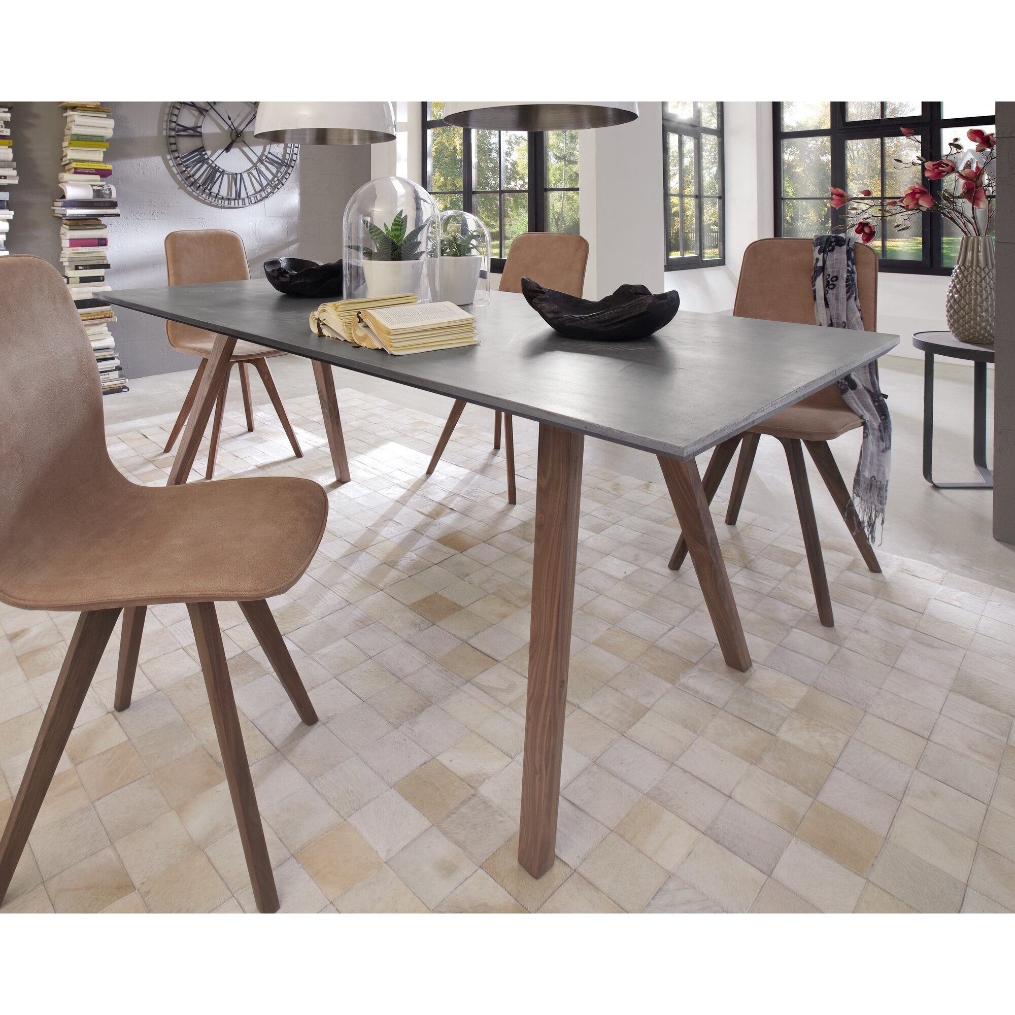 Massivholz »Stockholm« Beton Esstisch Nussbaum 220x95 cm