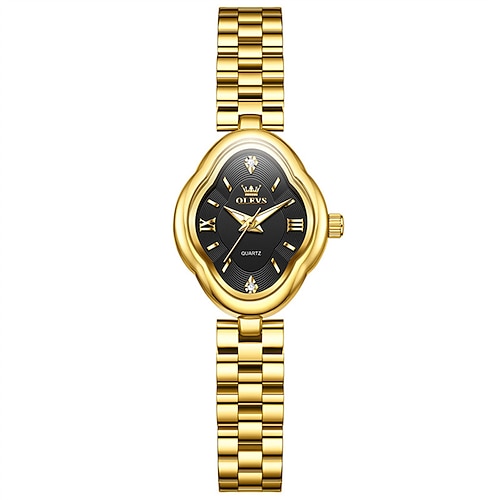 Orologi olevs da donna, elegante orologio al quarzo irregolare, bracciale in acciaio inossidabile dorato, orologio da polso analogico impermeabile con dettagli in diamante, orologio elegante di lusso