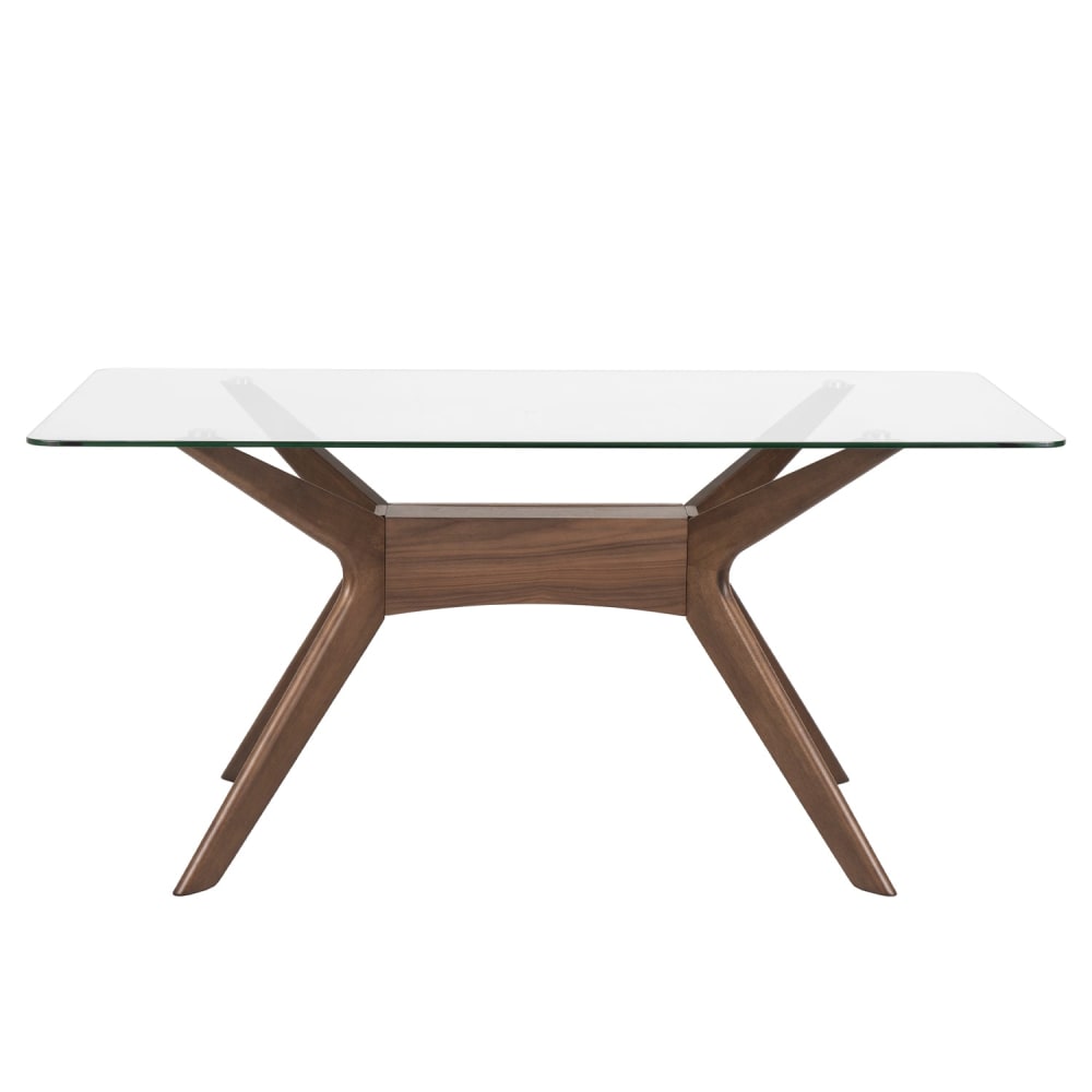 Tavolo da pranzo 160 con piano in vetro e gambe in noce