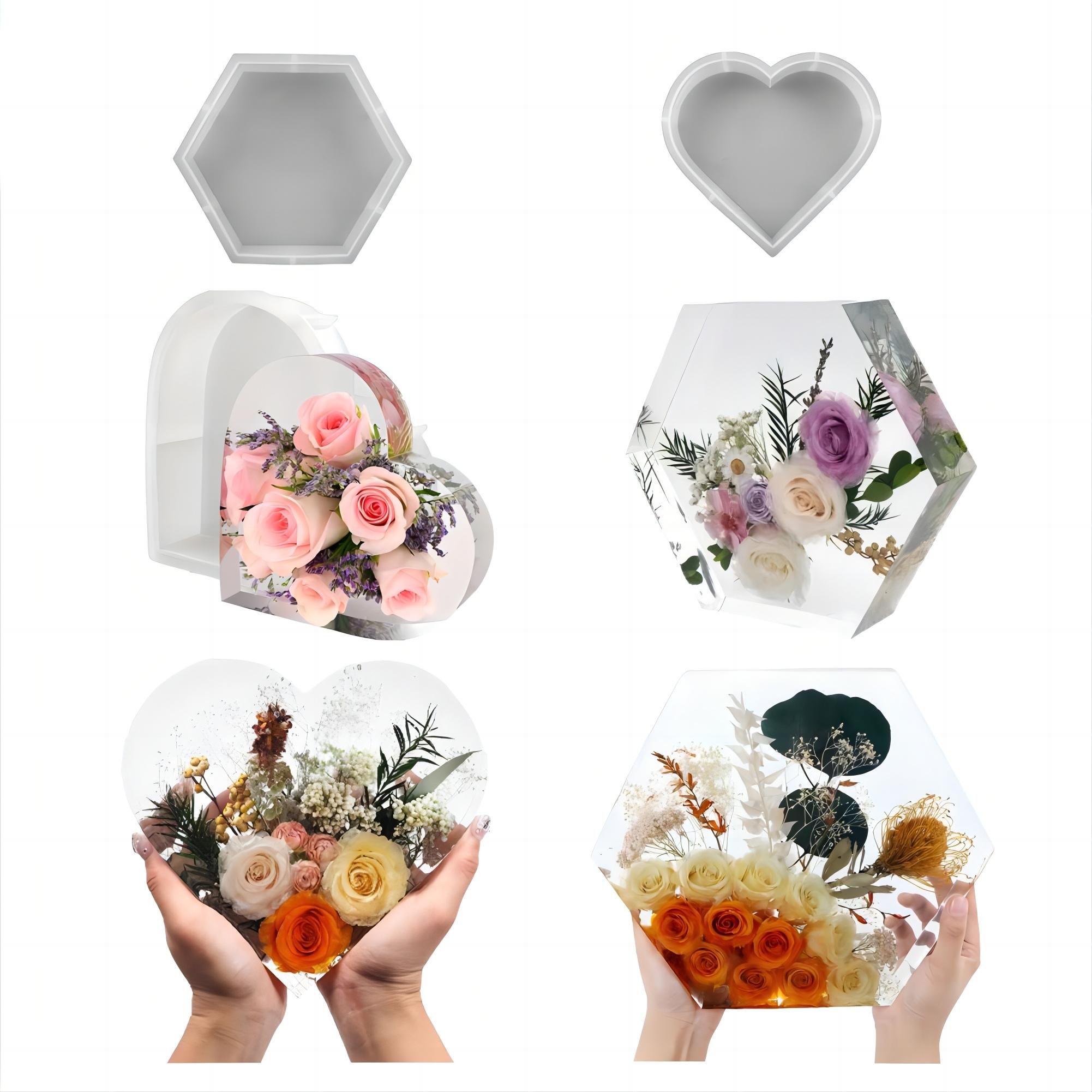 Grands Moules en Silicone Moule de Coulée en Résine Époxy Forme Hexagonale/Coeur Moule DIY Conservation de Fleurs Artisanat Cadeau Pour Mariage Saint-