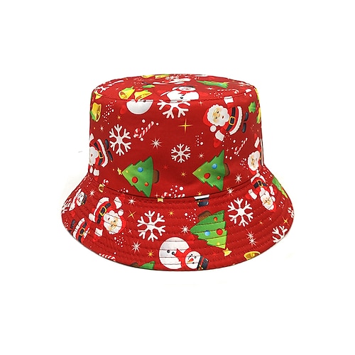 Cappello da pescatore natalizio da donna, in poliestere, con stampa di Babbo Natale e renne, copricapo per feste e celebrazioni invernali