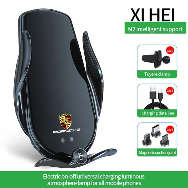 Car Wireless Charger Phone Holder Charging Portable Bracket For Porsche Cayenne Cayman Panamera Macan Taycan Boxster Accessories black