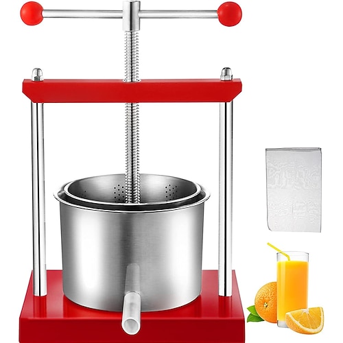 pressa per vino, pressa per uva per la produzione di vino, macchina per pressare il vino con due barili in acciaio inossidabile, pressa per vino, formaggio, frutta e verdura con maniglia Power Ball