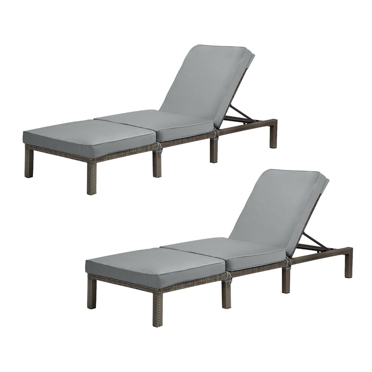 2er Set SVITA PEACH Gartenliege mit Polsterauflage Klappbar Polyrattan Grau