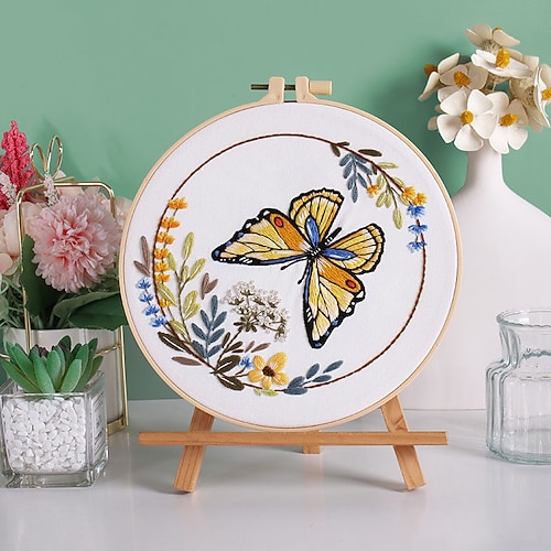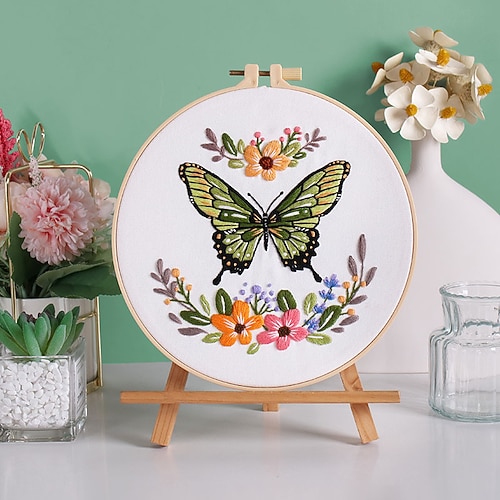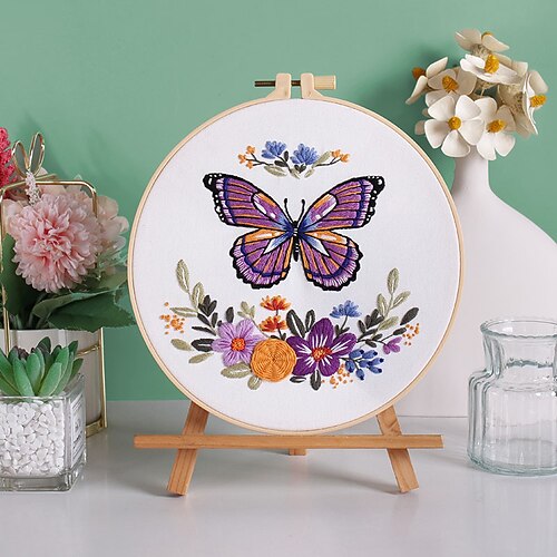 kit di ricamo a farfalla per principianti, kit di ricamo per principianti, ricamo moderno, punto croce, kit di ricamo a mano, punto croce, kit fai da te