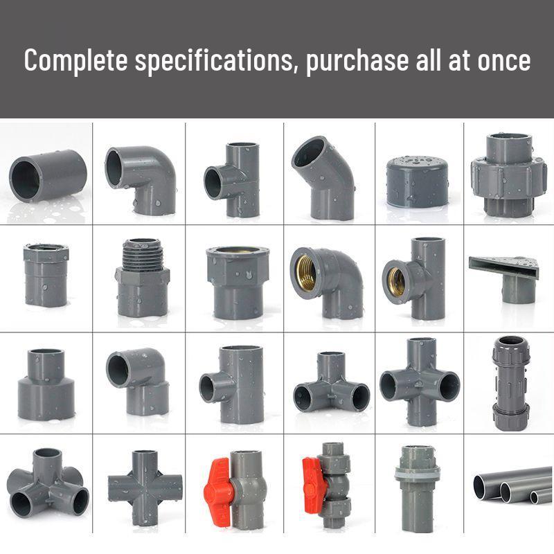 Graues PVC-Wasserrohr-Fittings-Set: Ellbogen-, T-Stück-, 3-Wege-, 4-Wege-Kunststoffverbinder für die Fischbecken-Wasserversorgung
