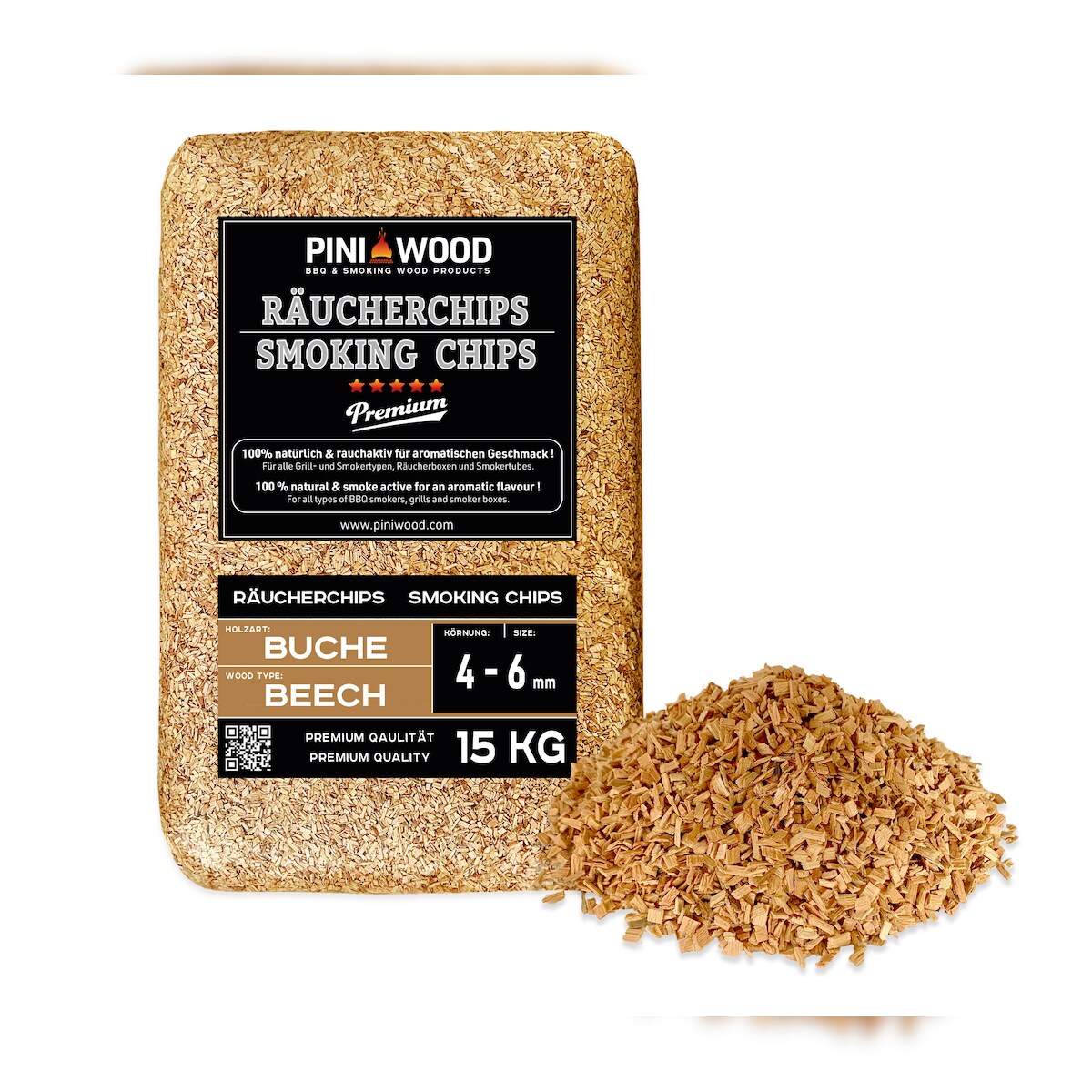 PINI 15 kg Räucherchips Buche 4-6 mm Smoking chips Räucherspäne