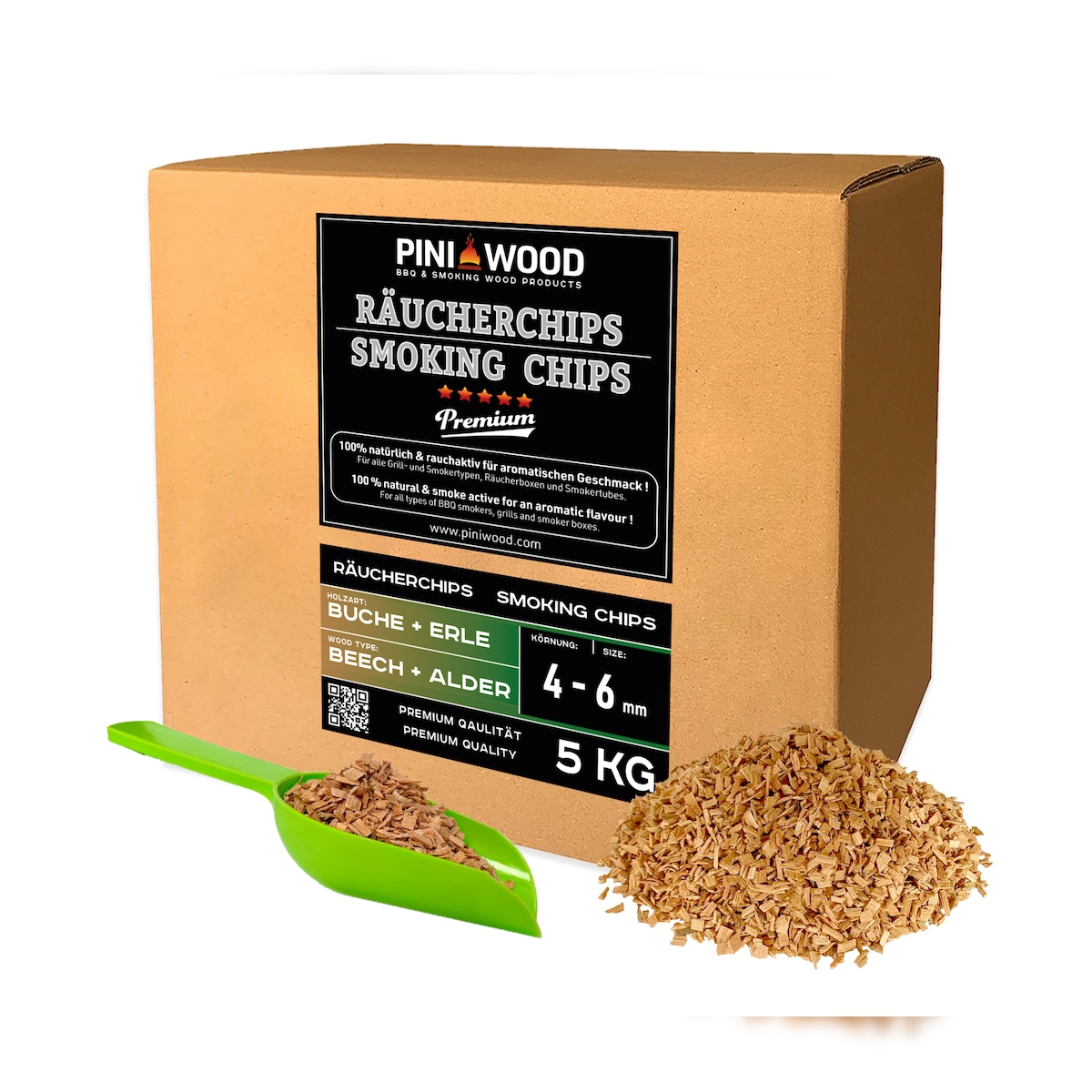 PINI 5 kg Räucherchips Erle ohne Rinde 1-3 mm Smoking Chips Räucherspäne