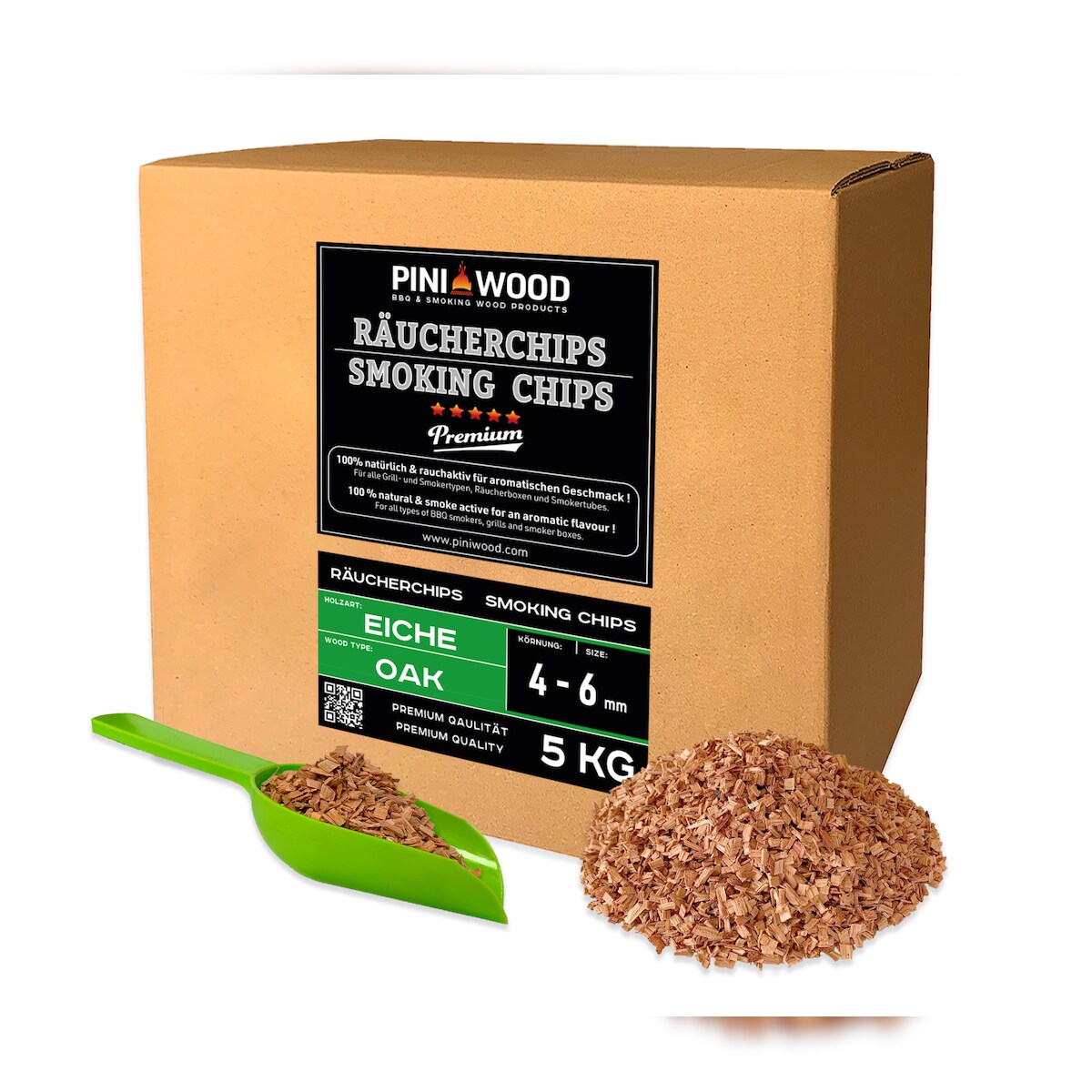 PINI 5 kg Räucherchips Eiche 4-6 mm Smoking Chips Räucherspäne