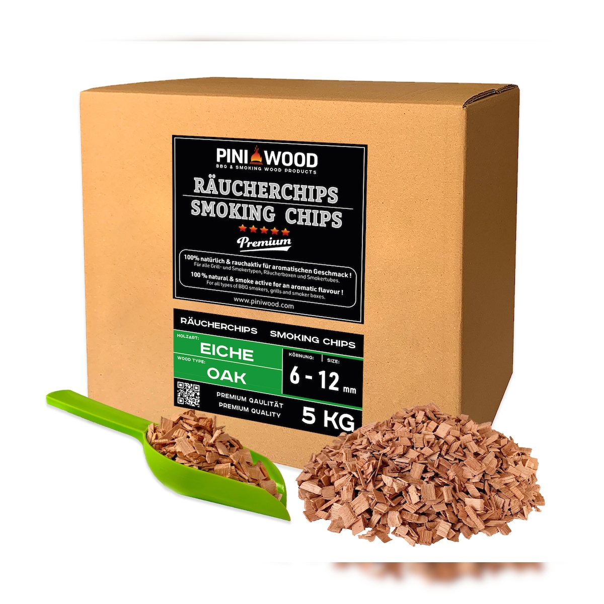 PINI 5 kg Räucherchips Eiche 6-12 mm Smoking Chips Räucherspäne