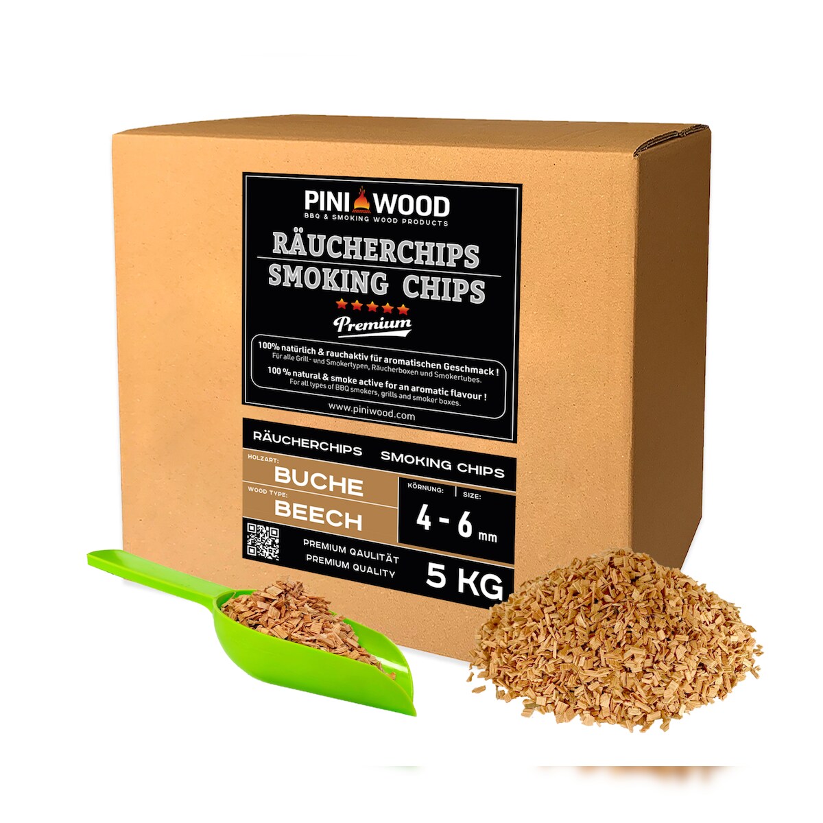 PINI 5 kg Räucherchips Buche 4-6 mm Smoking chips Räucherspäne