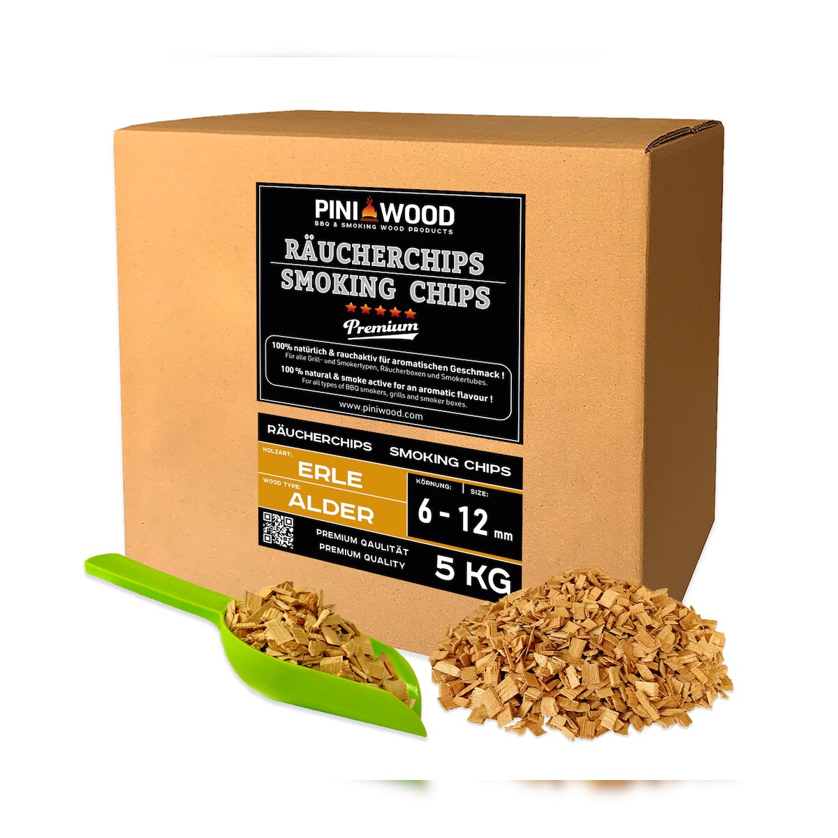 PINI 5 kg Räucherchips Erle ohne Rinde 6-12 mm Smoking Chips Räucherspäne