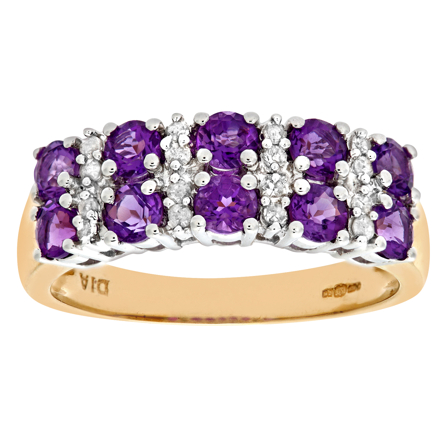 Diamant L'eternel Womens 9ct Yellow Gold Ladies Diamond and Amethyst Ring - Size R | Diamant L'eternel Sale | Discount Designer Brands