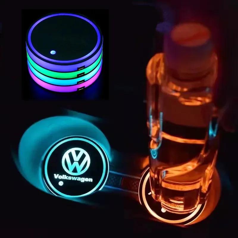 New New 7 Color LED Car Cup Holder Light Luminous Coaster Water Cup Pad For VW Volkswagen Polo Jetta Golf Beetle CC GTI gol