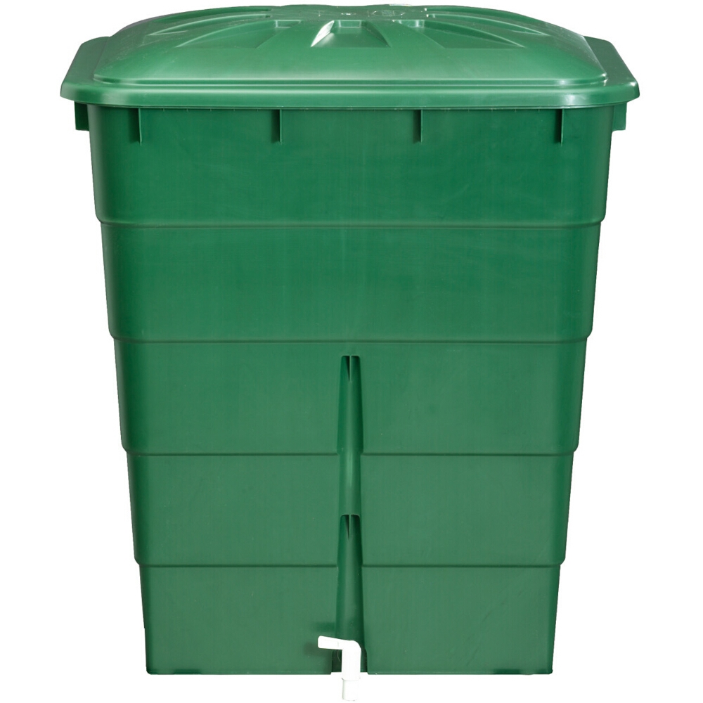 Regentonne eckig 203L mit Deckel und Hahn, Farbe: grün