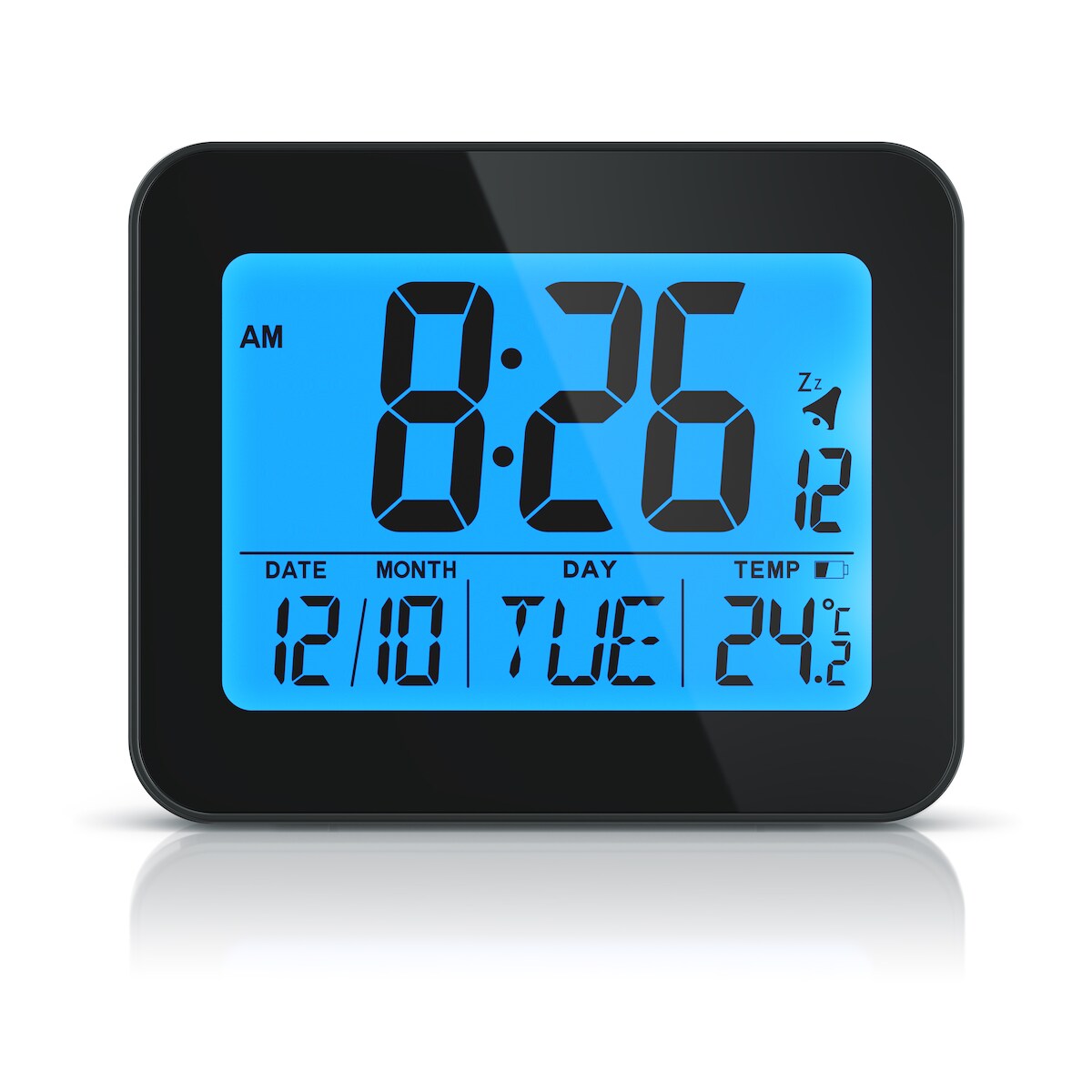 BEARWARE digitaler Wecker mit Netzteil und extra großen 2200 mAh Akku - Musikwecker Reisewecker - 13 Songs und Klingeltöne - Temperaturanzeige