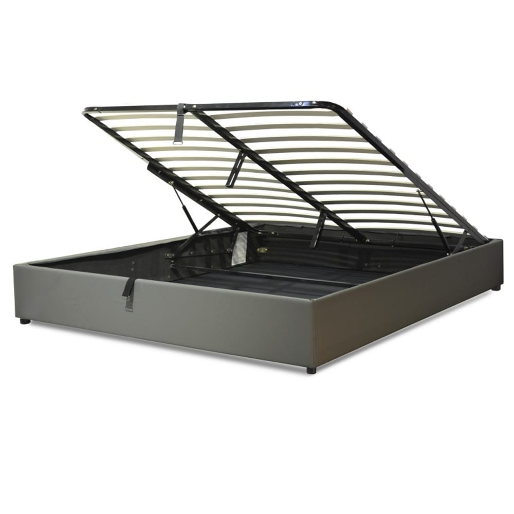 Letto contenitore in similpelle grigia con rete a doghe 160x200 cm