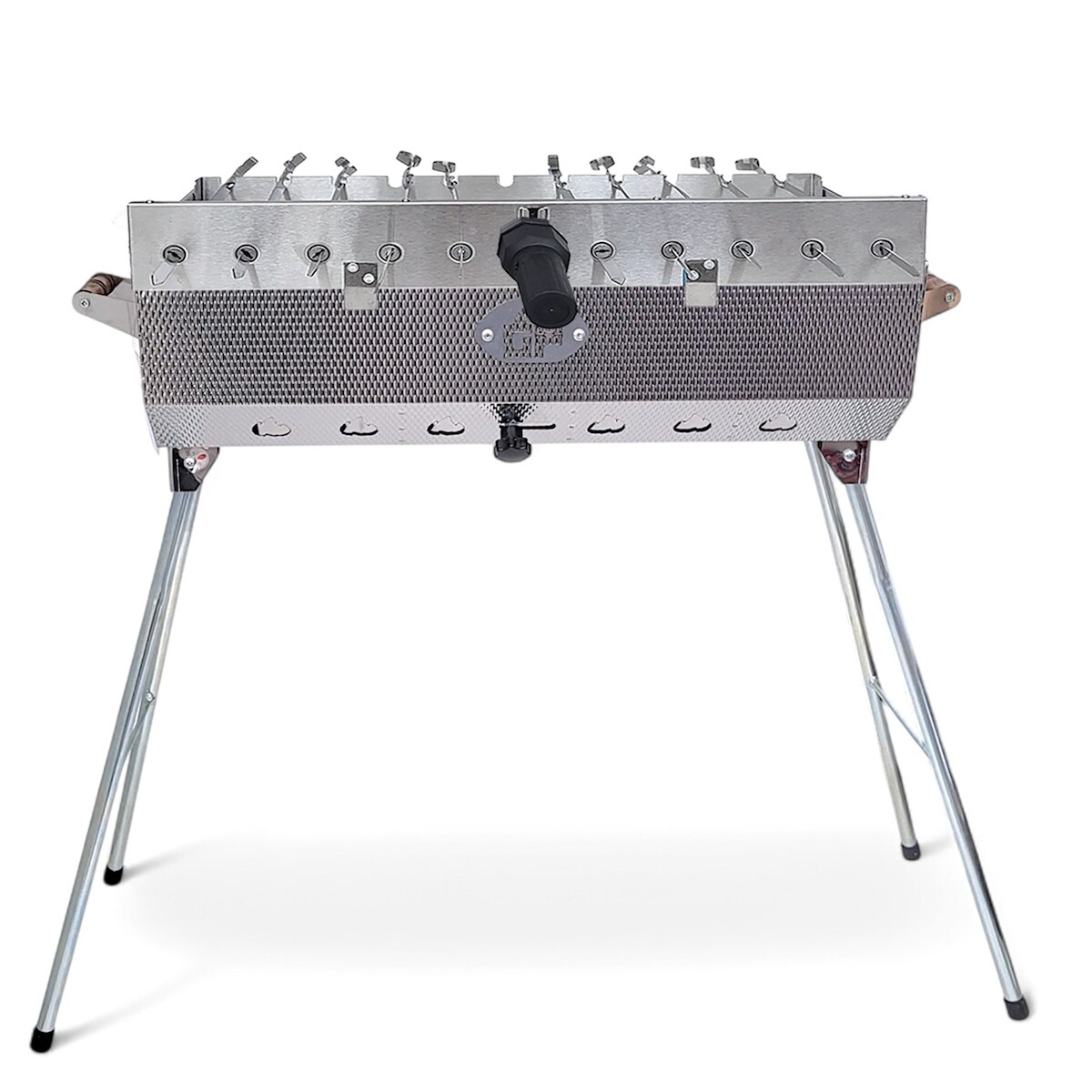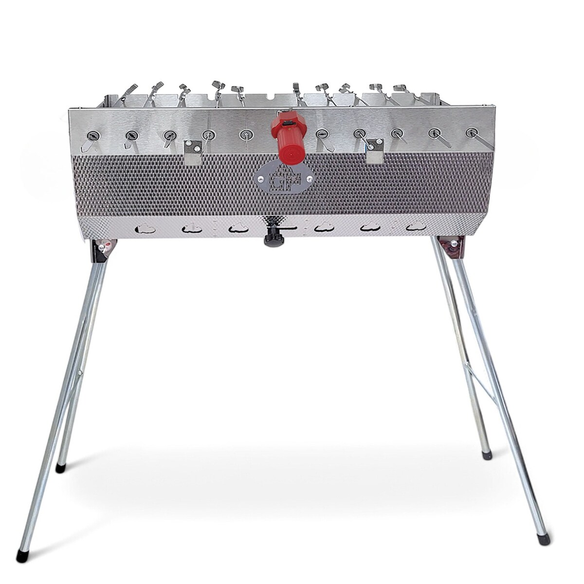Grillpeter Mangal Kairat Schaschlik Grill mit 11er Spießdreher 230V Motor 10 Spieße