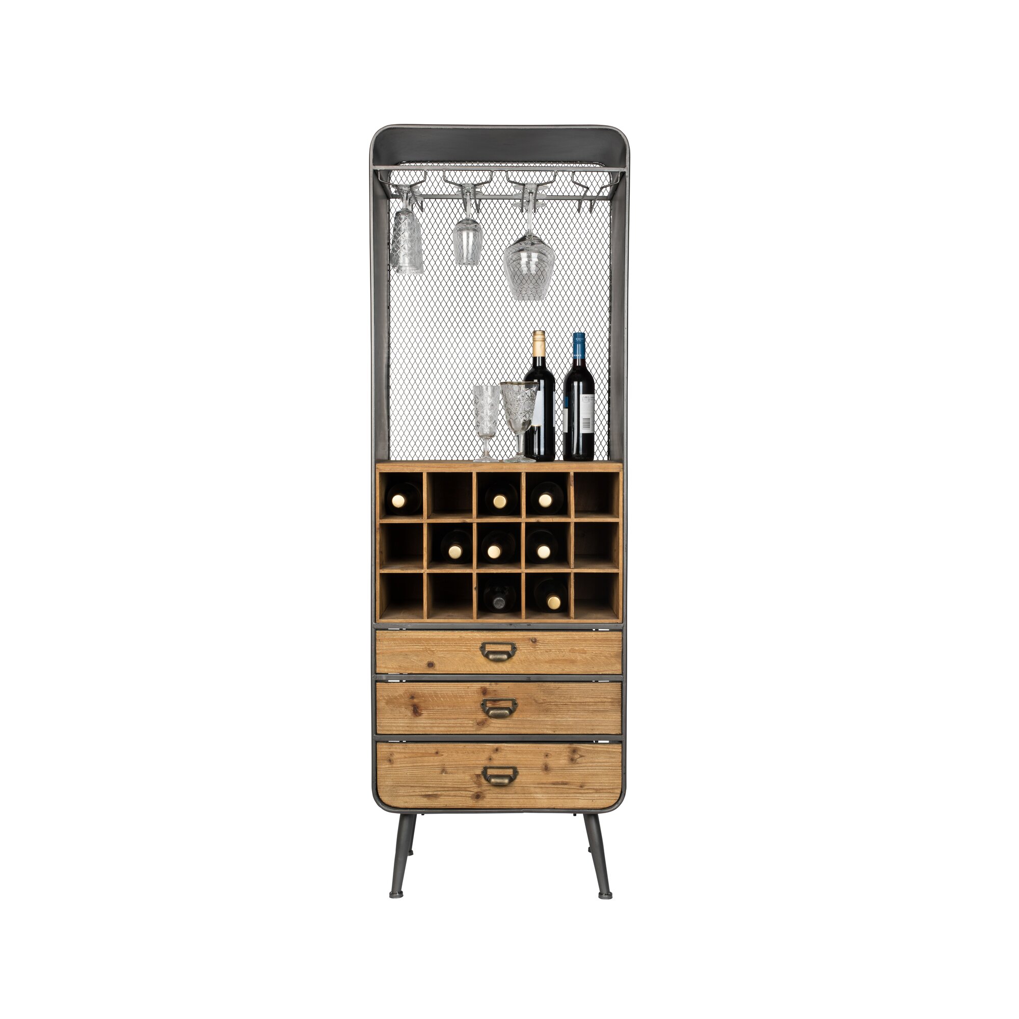 Schrank Holz Wohnzimmer Schrank beschnitzt mit Bügelgestell aus Metall