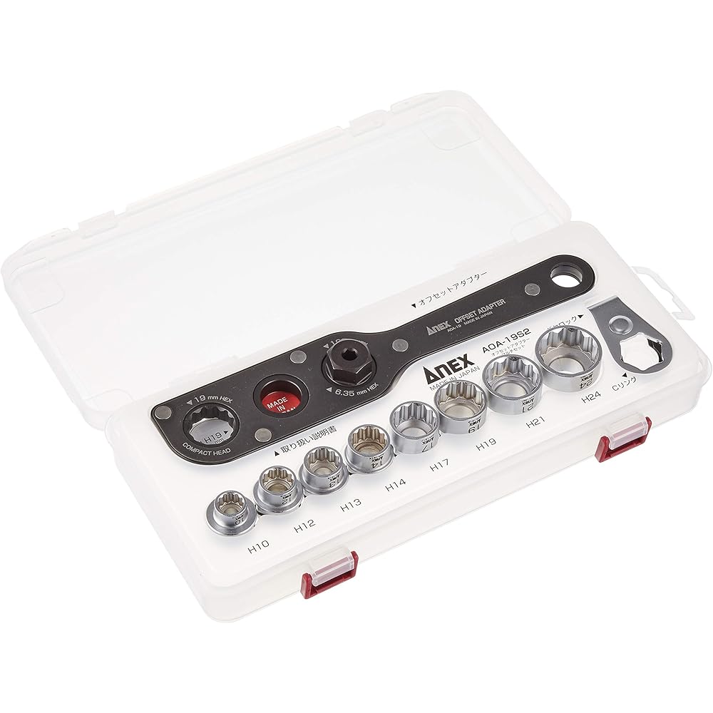 ANEX Offset-Adapter 19, 19mm Schlüsselweiten, mit Koffer, Multi-Set AOA-19S2 [Zum Drehen von Schrauben und Muttern in engen Räumen] Arbeiten auf engst