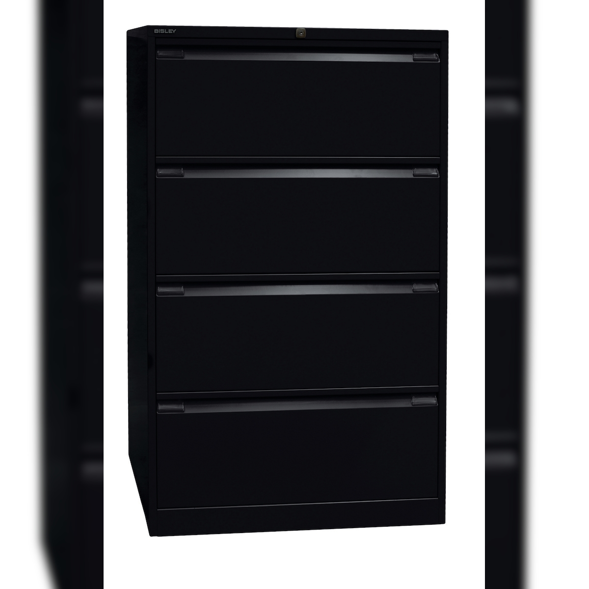 BISLEY Hängeregistraturschrank mit Schloss aus Metall in schwarz, 4 Schubladen, doppelbahnig - Hängeregisterschrank abschließbar, Hängeregistratur