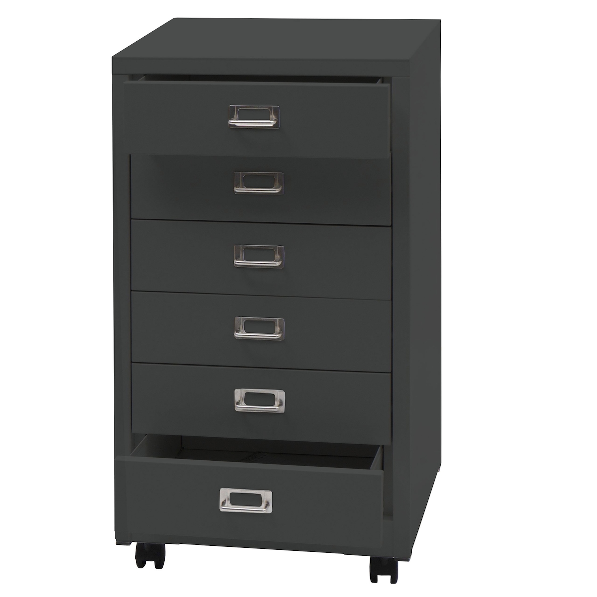 Proregal Rollcontainer | HxBxT 75x40x41cm | Metall 6 Schubladen | Dunkelgrau | Schubladenschrank Stahlschrank Aktenschrank
