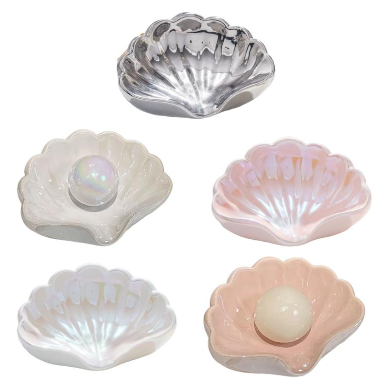 Seashells Shaped Soap Holder Nonslip Bottom Smooth Ceramic Materials Artistic Bathroom Organiser Storage Tray