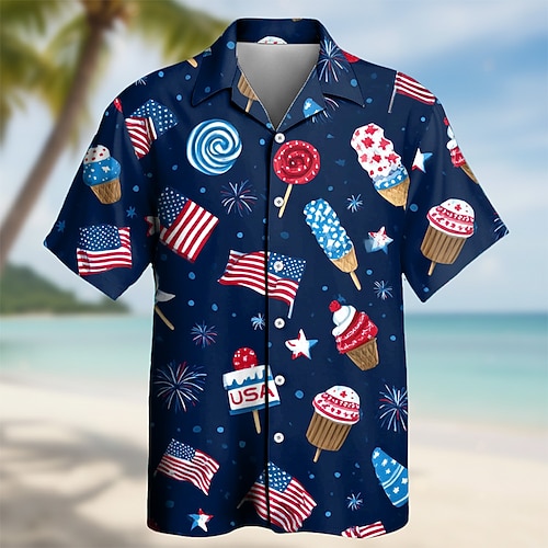 Per uomo Alimenti Bandiera degli Stati Uniti 250° anniversario degli Stati Uniti Camicia Camicia con Bottoni Manica Corta Moda Casual All'aperto Ferie Estate Primavera Collo ripiegato Stampa 3D