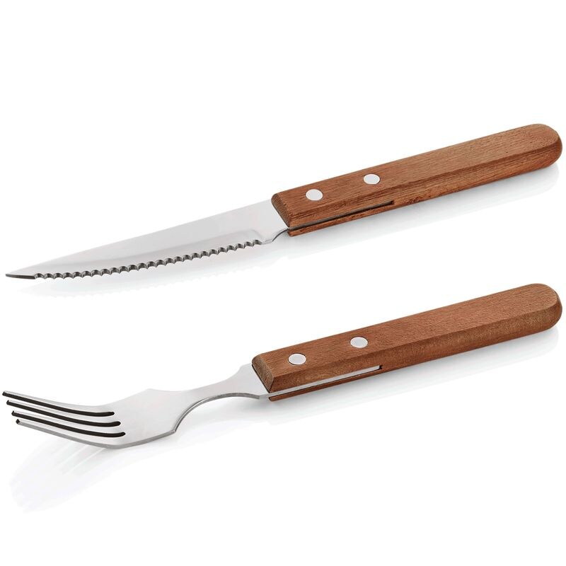 24x Steak-/ Pizzabesteck Gabel + 24x Messer Holz braun, 48 tlg.