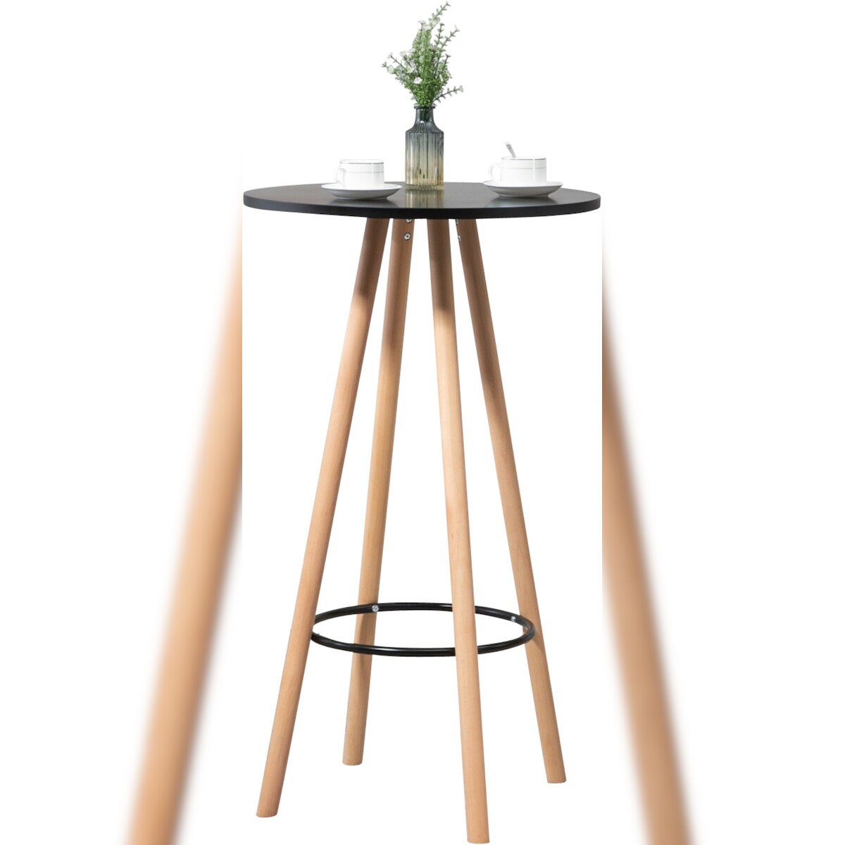 WellHome - Stehtisch in Weiß mit schwarzen Beinen Ø80x110cm